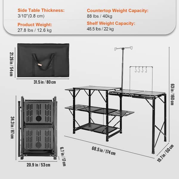 Outdoor Camping Kitchen, Folding Portable Cook Station, Camping Cook Table with 3 Side Table, 2 Shelves, Detachable Sink