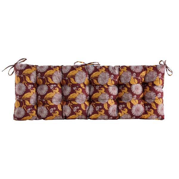 Outdoor Cushions Bench Settee Tufted Seat Wicker Cushion For Patio Furniture 51 in. x 18 in. x 4 in. Floral in Red