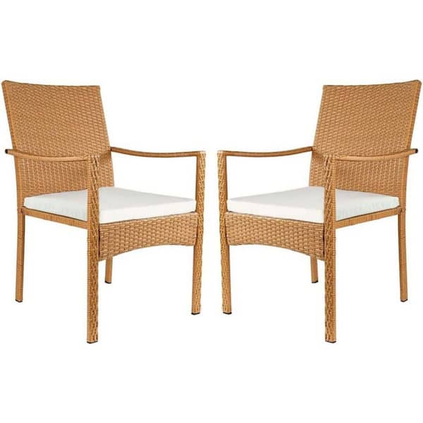 Outdoor Dining Chairs with Cushions, PE Rattan - Light Brown (Pack of 2)