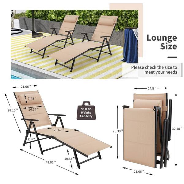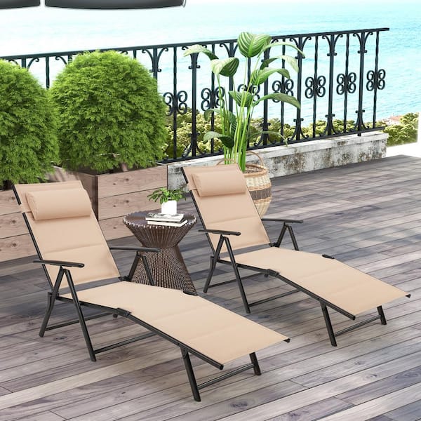 Outdoor Folding Lounge Chair Reclining Adjustable Lightweight Chaise Lounge Chair in Brown Set of 2