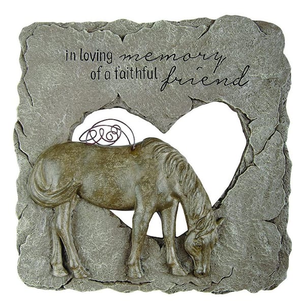Outdoor Garden Animal Pet Memorial Stone with Angel Horse, Heart Cutout