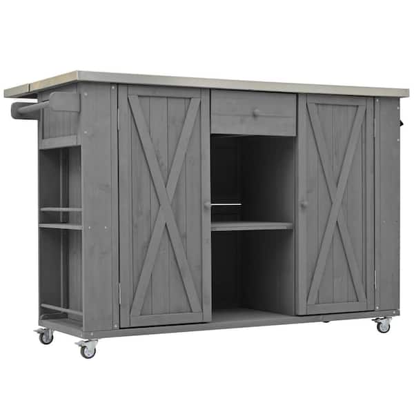 Outdoor Grey Fir Wood 52.25 in. W x 28.75 in. D x 36.25 in. H Grey Fir Wood Outdoor Storage Cabinet with Locking Wheels