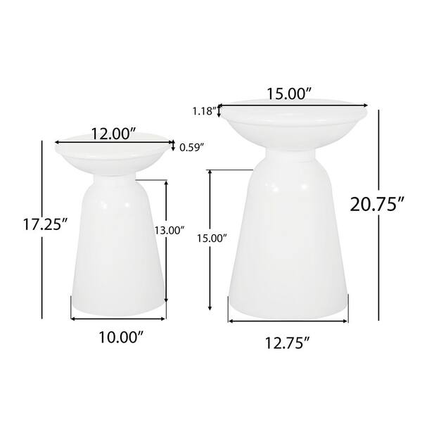 Outdoor Iron Side Table with Flared Design, White (Set of 2)