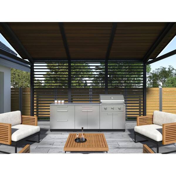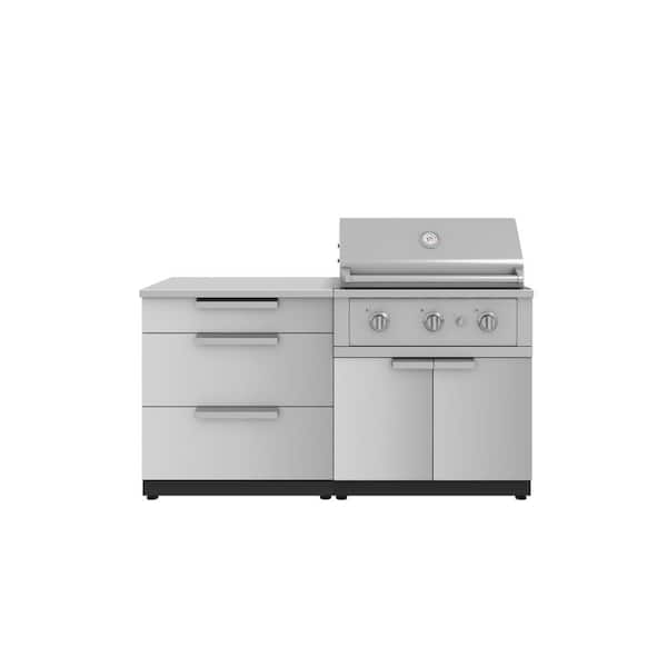 Outdoor Kitchen 65 in. W x 24 in. D x 48.5 in.H Stainless Steel 4-Piece Cabinet Set 33 in. Performance Natural Gas Grill