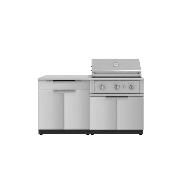 Outdoor Kitchen 65 in.W x 24 in.D x 48.5 in.H Stainless Steel 4-Piece Cabinet Set w/33 in. Performance Natural Gas Grill