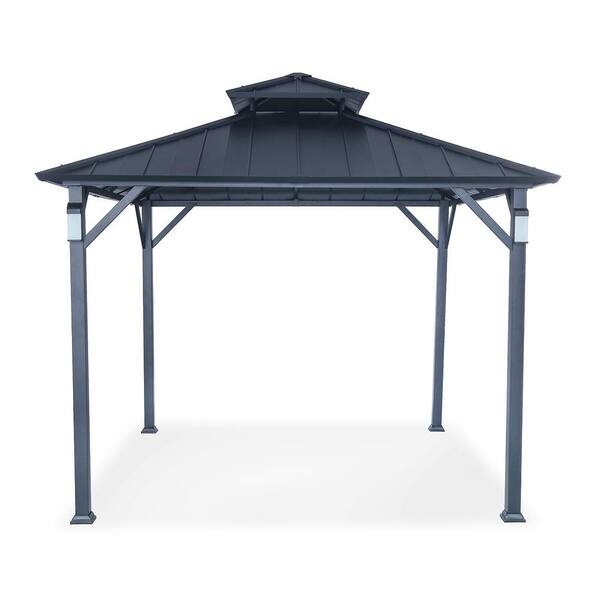 Outdoor Leisure 10 ft. x 10 ft. Dark Brown Hard Top Gazebo with LED Lighting