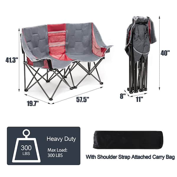 Outdoor Metal Frame Gray Double Seat Camping Chair Beach Chair with Side Pocket