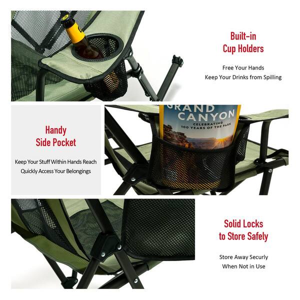 Outdoor Metal Frame Green Mesh Beach Rocking Chair with Side Pocket (Set of 2)