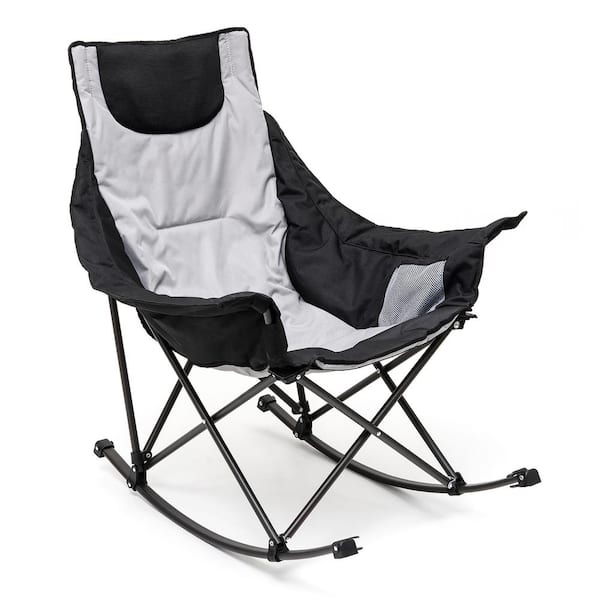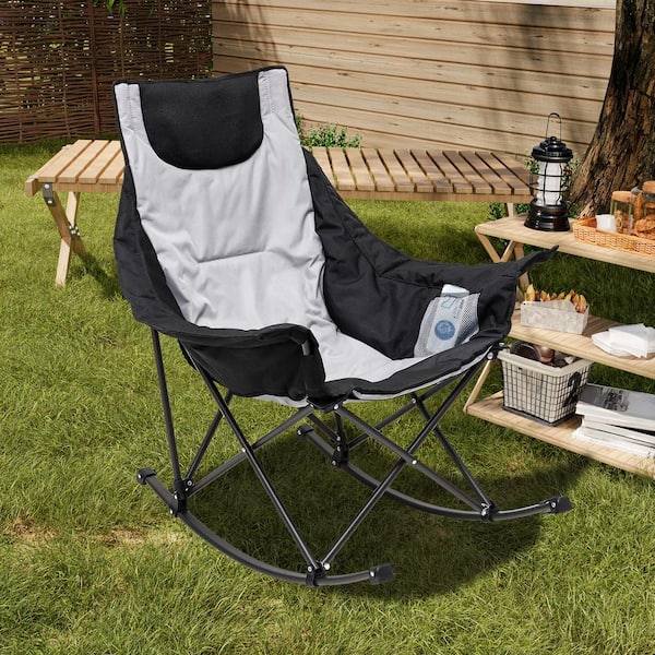 Outdoor Metal Frame Grey Rocking Chair Lounge Chair with Side Pocket