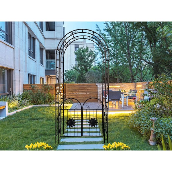 Outdoor Metal Garden Arch, Plant Support Climbing Arch with Double Doors for Wedding Party Events, Black