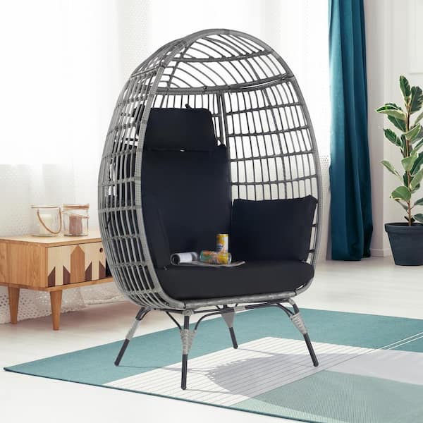 Outdoor Oversized Gray Rattan Egg Chair Indoor Outdoor Chair