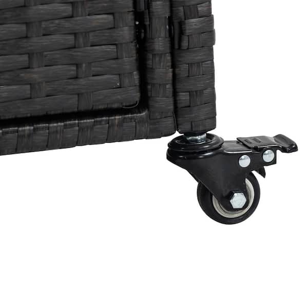 Outdoor Patio Black Wicker Serving Cart with Glass Top