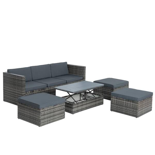 Outdoor Patio Conversation Furniture (Set of 5) Wicker PE Wicker Furniture with Lift Coffee Table and Dark Gray Cushions