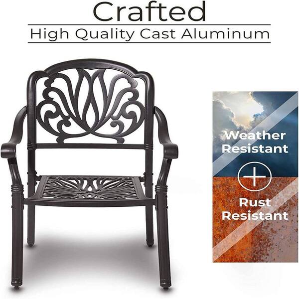 Outdoor Patio Dining Chairs with Brown Cushions, Cast Aluminum Frame, Metal Rust-Free Furniture for Lawn (2-Pack)