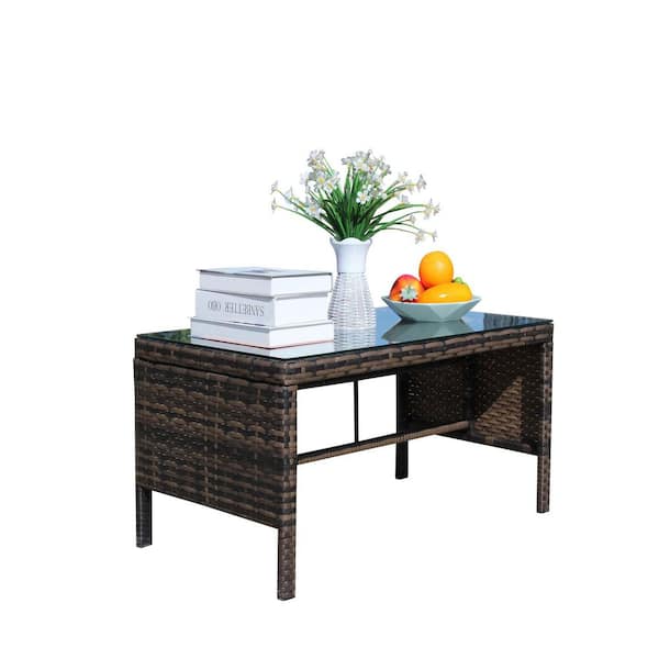 Outdoor Patio Furniture 1 Coffee Table with Clear Tempered Glass Suitable For Courtyard Terrace Garden