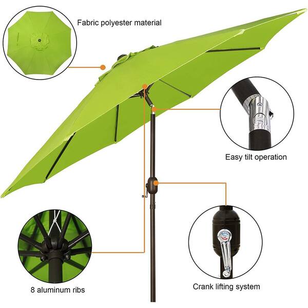 Outdoor Patio Umbrella, Market Striped Umbrella with Push Button Tilt and Crank, Market in Lime