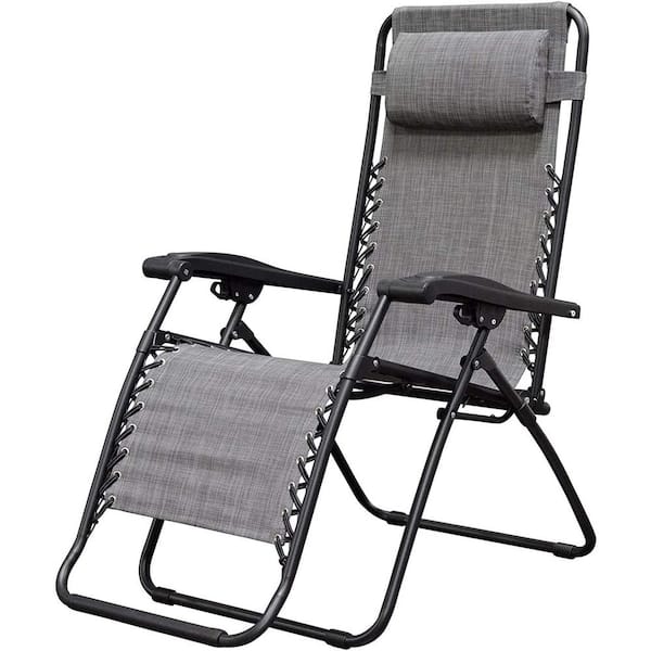 Outdoor Portable Folding Camping Lawn Deck Patio Pool Recliner Lounge, Adjustable Headrest, Grey Set of 1