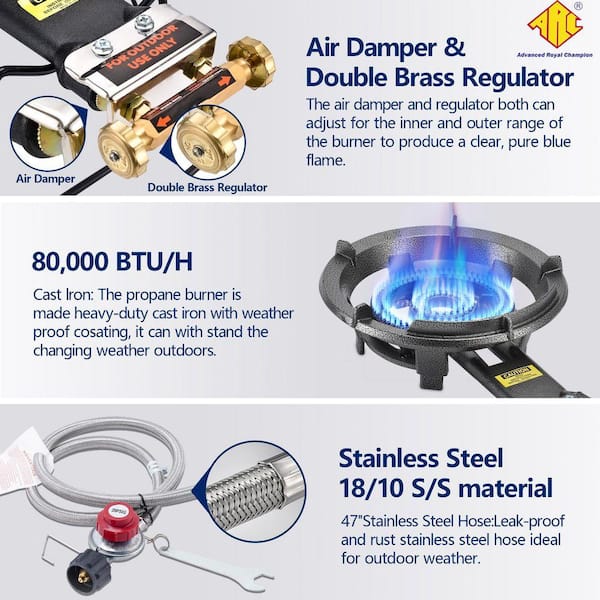 Outdoor Propane Burner,13"Cast Iron One Side Burner with 0-20PSI Regulator,Stainless Steel Hose,Ideal for Wok Cooking