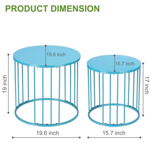 Outdoor Side Table Set of 2, Metal Circle Accent End Tables Durable Blue Nesting Coffee Tables