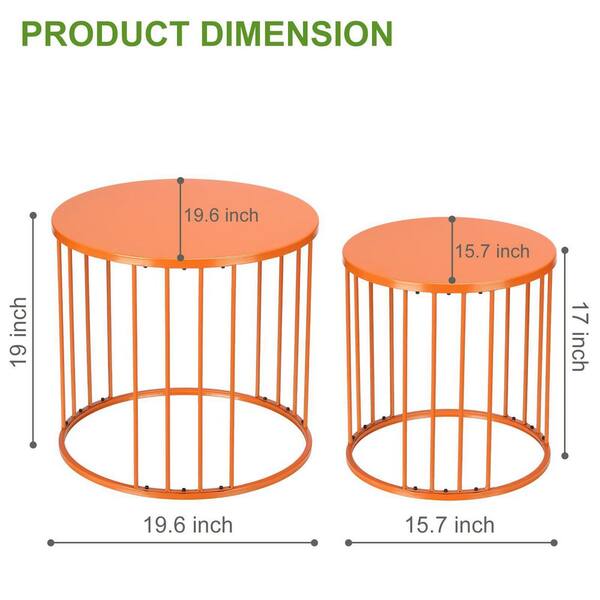 Outdoor Side Table Set of 2, Metal Circle Accent End Tables Durable Orange Nesting Coffee Tables