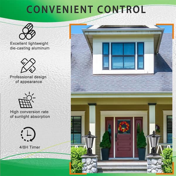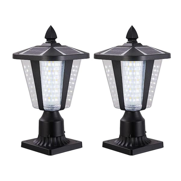Outdoor Solar Light, 15 in. Black Dusk to Dawn Outdoor Solar Powered Garden Light Lantern with LED, 2-Pack
