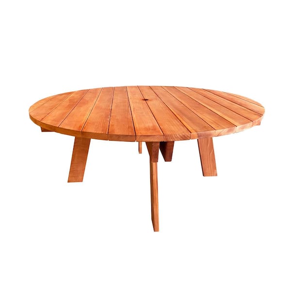 Outdoor Super Deck 6 ft. Round Redwood Picnic Table Kit