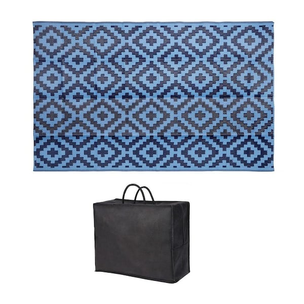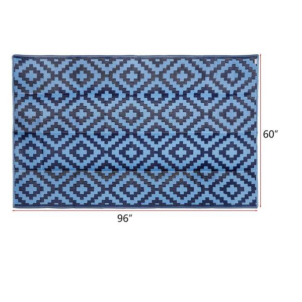 Outdoor Waterproof 5x8 ft Plastic Reversible Rug, Blue