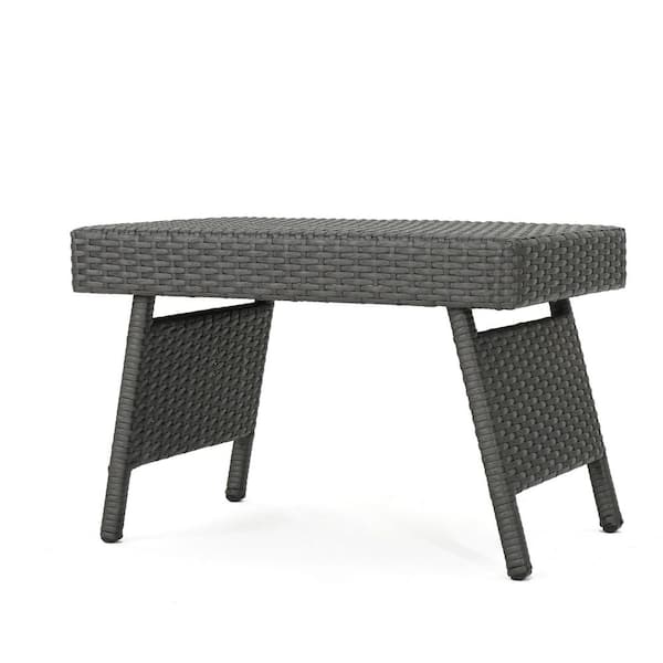Outdoor Wicker Coffee Table Rectangular Faux Rattan Patio Side Table with Sturdy Construction