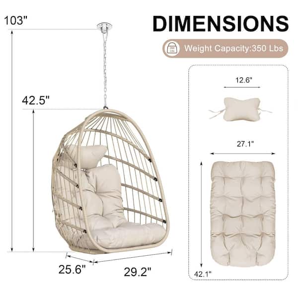 Outdoor Wicker Hanging Swing Egg Chair without Stand, Hammock Chair Porch Swings With Beige Cushions