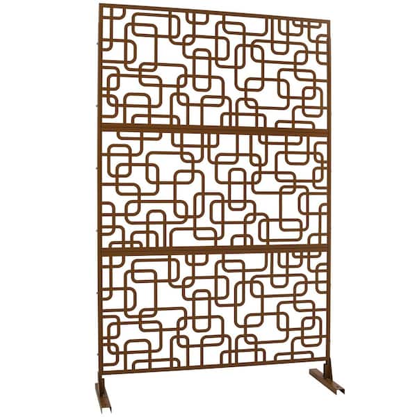 Outdoor and Indoor 6.3 ft. x 4 ft. Freestanding Decorative Privacy Fence Screen Brown Metal for Garden Fence