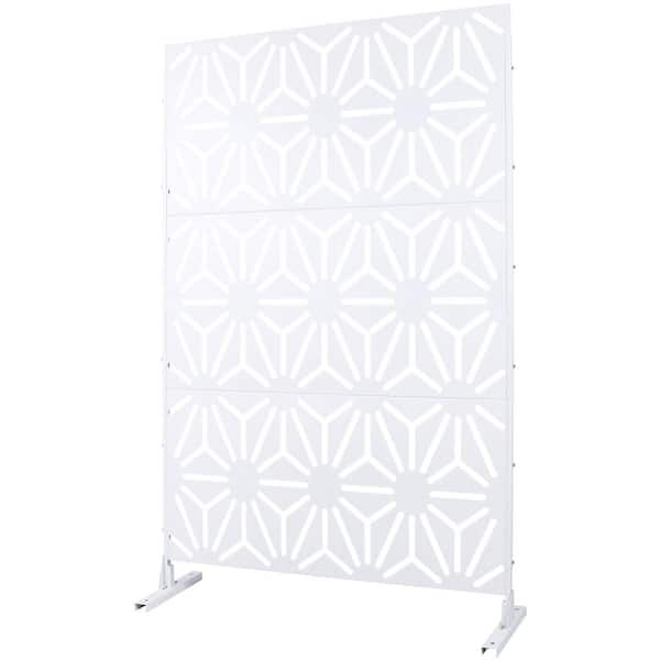 Outdoor and Indoor 6.3 ft. x 4 ft. Freestanding Decorative Privacy Fence Screen White Metal for Garden Fence