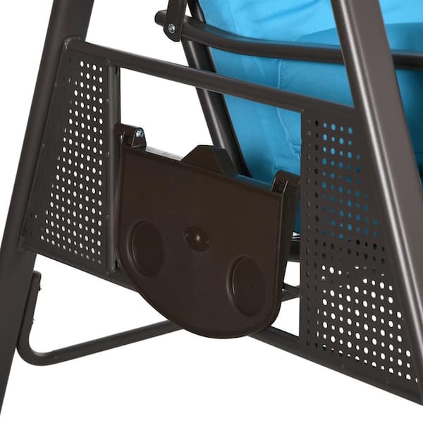 3-Person Alloy Steel Patio Swing with Adjustable Canopy, Blue Removable Cushion, Pillows and Side Trays