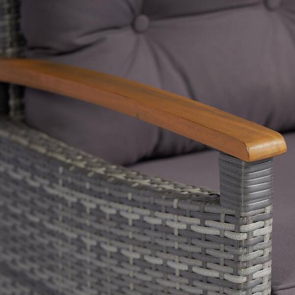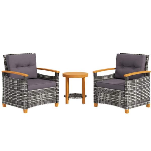 3-Piece PE Rattan Wood Round 19 in. Outdoor Bistro Set with Gray Cushions