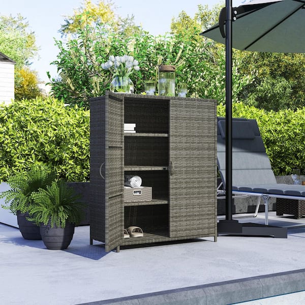 33 in. W x 16 in. D x 40 in. H Mixed Gray Wicker Outdoor Storage Cabinet with Shelves 4-Shelf Outdoor Pool Towel Storage