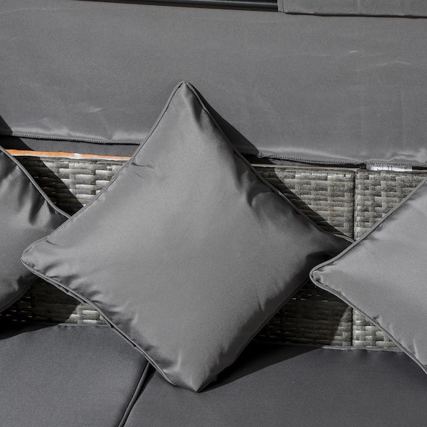 4-Pieces Metal Plastic Rattan Outdoor Couch Sectional Set with Light Gray Cushions and Overhead Canopy