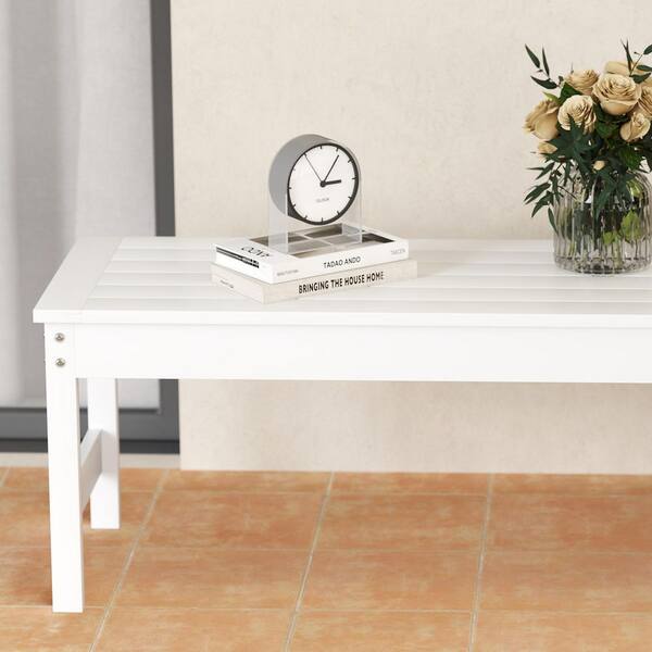 47" 2-Person Outdoor Bench, HDPE Garden Bench Seat, Backless Slatted Patio Bench, Rot and Fade Resistant, White