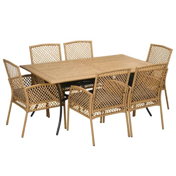7-Piece Wicker Outdoor Dining Set with Gray Cushions