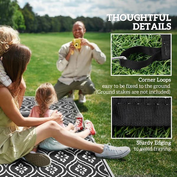 Black and White Gourd Border 9 ft. x 18 ft. Waterproof Plastic Straw Floor Mat Large Reversible Outdoor Rug Area Rug