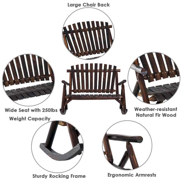 Brown Rocking Wood Adirondack Chair for 2 People with Rustic Log Design