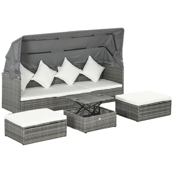 Cream Whites 4-Pieces PE Rattan Patio Conversation Set with Cream White Cushions