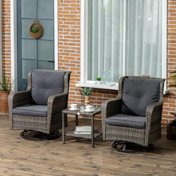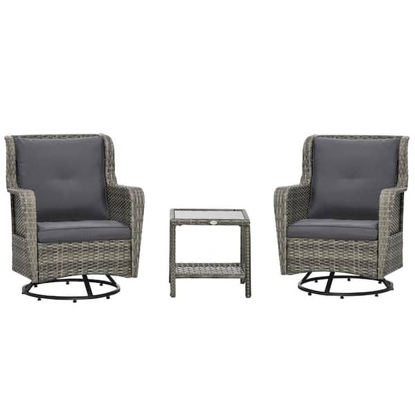 Gray 3-Piece Wicker Outdoor Bistro Set with Soft Cushions