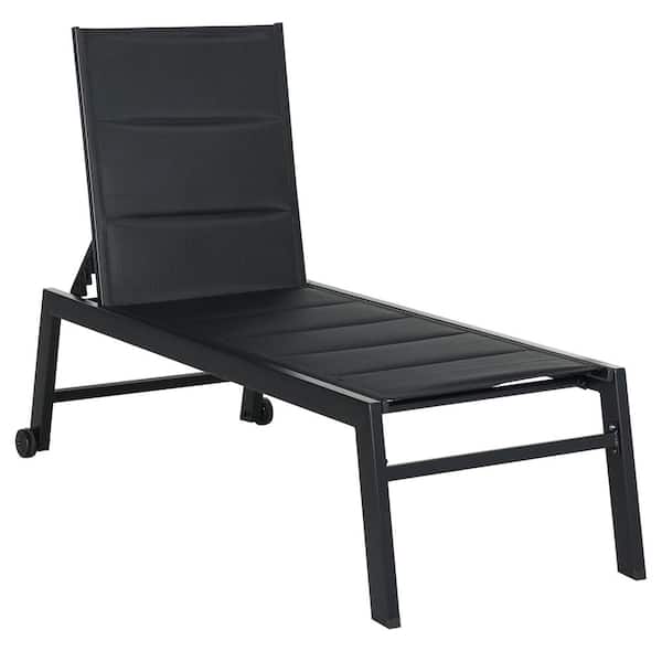 Metal Outdoor Fabric Lounge Chair in Black (Set of 1)