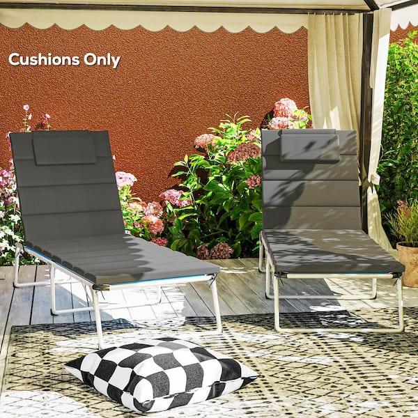 Outdoor Foldable Lounge Chair Cushion Set of 2, UPF50+ 230 gsm Olefin and 25D Foam, Chaise Lounge Cushion Set, Dark Gray