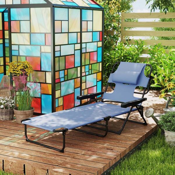 Outdoor Lounge Chair, 4-Position Beach Chair with Face & Arm Holes, Pillow headrest, Sunbathing Chair (Set of 1) Gray