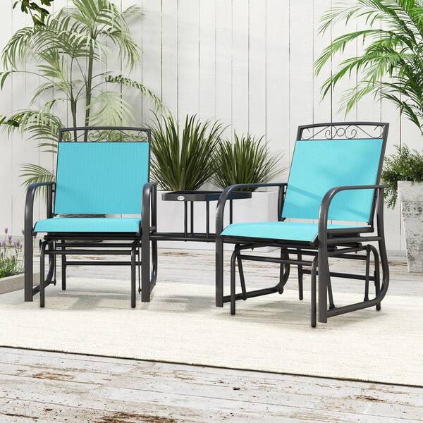 Outdoor Metal Glider Chairs with Coffee Table, Patio 2-Seat Rocking Chair Swing with Breathable Sling