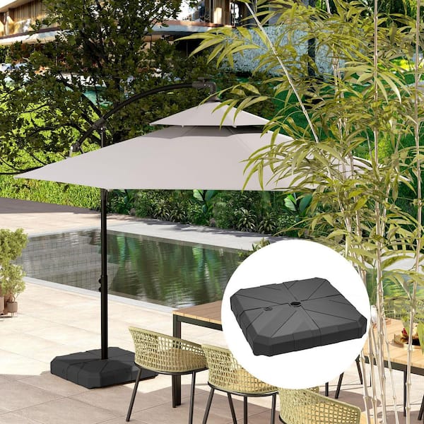 Patio Umbrella Base, Cantilever Offset Umbrella Base Filled Up to 143 lbs. with Stand or 130 lbs. with Water in Black