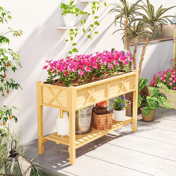 Raised Garden Bed, 44.1 in. x 18.5 in. x 8.5 in. Elevated Wood Planter Box with Storage Shelf, Drainage Holes, Yellow