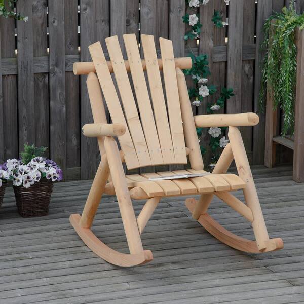 Rocking Wood Adirondack Chair with Slatted Design for Patio, Lawn