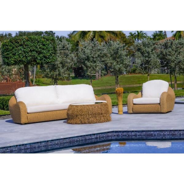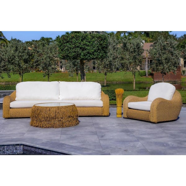 Katalina 3-Piece Patio and Backyard Poly Hyacinth Conversation Set with Aluminum Frame and White Cushions