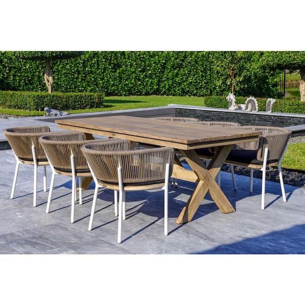 Santino + Melina Grey and White 7-Piece Wood Rectangular Standard Height Outdoor Dining Set with Sunbrella Grey Cushions